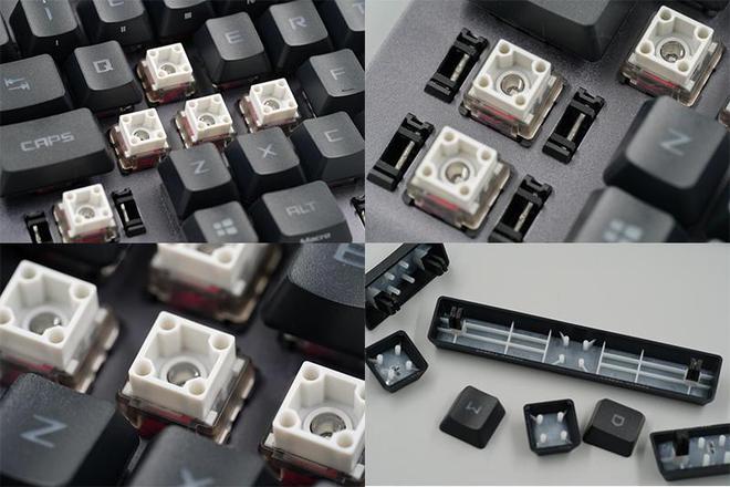 让我们看看ROG Legend RX TKL开发的RX轴,这是一种光轴轴体,掰掉键帽我惊呆了!机械轴的结构与我们的正常轴完全不同,方形火山口结构+矩形固定插座,与轴内X结构稳定器兼容,实际触觉很好.本人多年来一直使用CHERRY红轴,所以这次在ROG Voyager RX TKL上也选择了红色轴,虽然都叫做红轴吧,但手的感觉略有不同,RX的红轴比CHERRY的红轴明显得多,主要是在反馈方面。RX红轴的稳定性和平衡基本上等于CHERRY的稳定性和平衡。在压力路径方面,两者之间绝对存在差异,但手的感觉很微妙,所以我不需要花时间适应它,很快就能上手了。