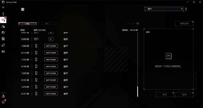 在软件中,宏定义函数显示为单独的模块,可以与ROG键盘和鼠标一起定义。