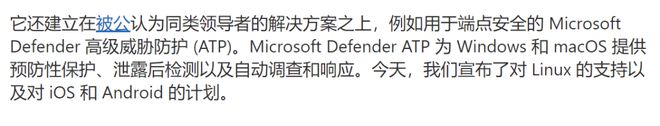 2020年2月20日,微软宣布为iOS、Linux和Android系统推出Microsoft Defender。