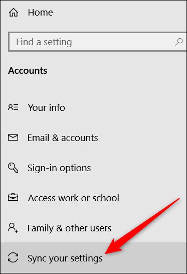 在帐户页的左边,单击“同步您的设置”。