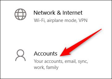 在设置窗口中, 单击“帐户”选项.