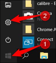 单击“启动”按钮,然后单击“设置齿轮”,打开“设置”应用程序。