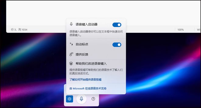 然后按“Windows”+“H”组合键打开听写功能,等待初始化完成后,win11桌面将显示语音输入工具,用户可以为语音工具做一些设置,例如,打开语音引导器。开启“自动标点”。当用户完成安装时,你可以在语音工具中间按麦克风按钮开始语音输入,此时,那些在收音机上工作的麦克风按钮变成一个波动的形状,用户发言并输入文本。注意,要想进行语音输入,光按钮必须位于文本输入接口中。