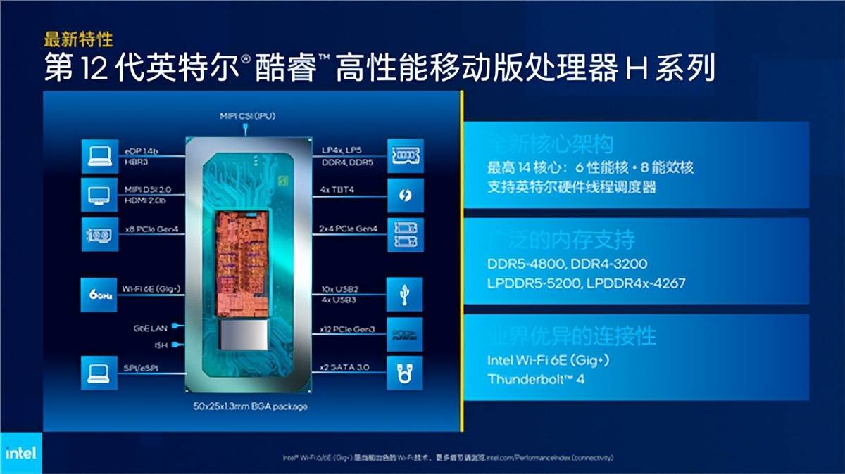 专业内容创建效率:以H系列移动终端处理器为例,整个系统支持DDR5内存,并且与DDR4兼容,为带有H系列冷处理器第12代的笔记本电脑提供了无限的可能性:DDR5带来了超强的性能,LPDDR5具有较低的功率消耗,DDR4和LPDDR4在成本方面作出让步,可以根据需要选择笔记本品牌。