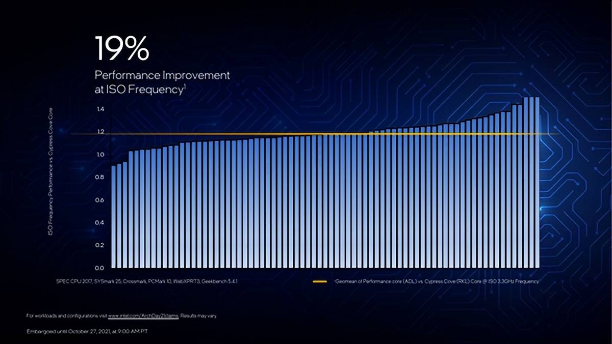 英特尔新推出的P核心使用新设计的Golden Cove微架构,以优化单核性能,为IPC提供高达19 % 的带宽改进。