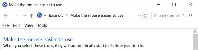 打开控制面板并转到控制面板 > 轻松访问 > 轻松访问中心 > 使鼠标更易于使用。