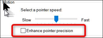 如果此选项被禁用,你的指针移动直接与移动鼠标的距离有关。如果此选项被启用,指针移动基于Windows考虑的最佳值。