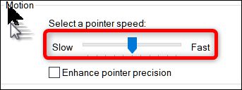 这里的运动滑块决定了指针移动的速度.向右滑动以使它更快;向左滑动以减速。你必须测试以找到适合你的设置。你所寻找的东西是足够快的东西,你可以穿过显示器的整个宽度而不移动太多的手。但不会那么快,你的针就消失在你身上。