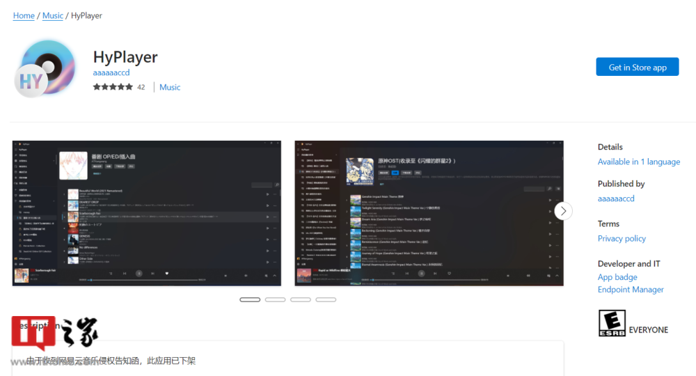 Win11/10商店下架多款第三方网易云音乐UWP应用