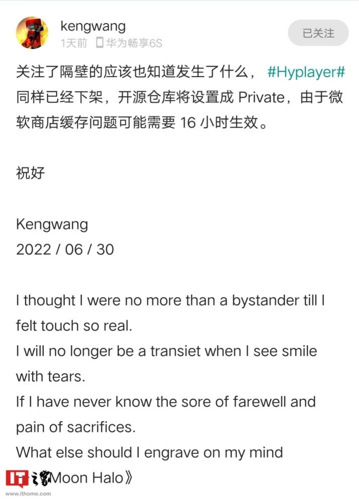 另一位开发者Kengwang表示,第三方Netscape Cloud Music UWP应用程序Hyplayer也在建设中,开放源代码仓库将设置为Private。