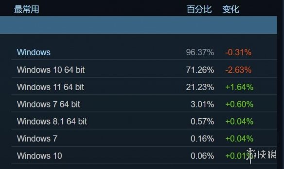 6月,玩家最常用的操作系统是Windows 10(64位),使用率下降了2.63%,而Win 11的使用率仍在增长,目前为21.23%。