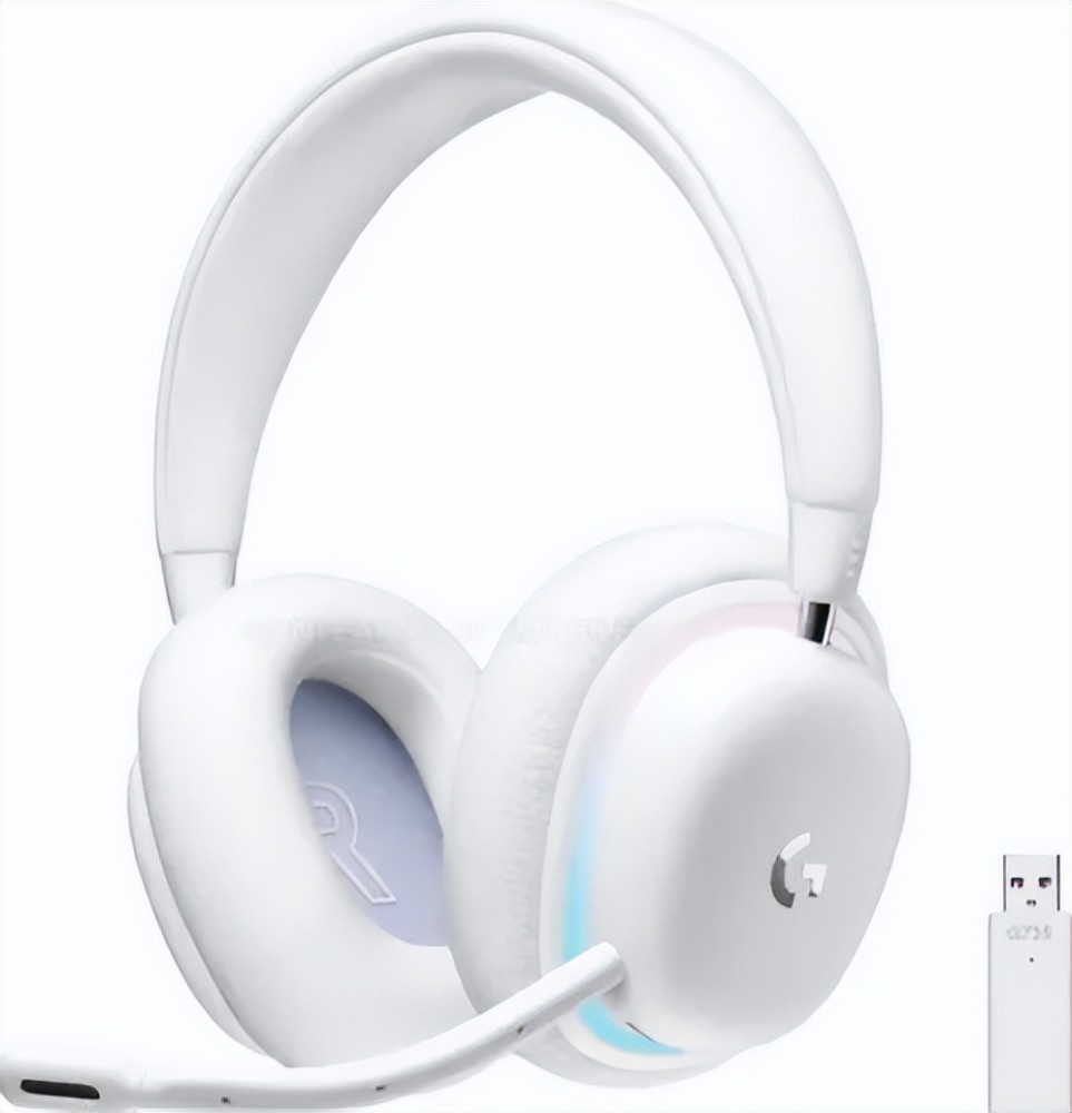 奧羅拉G735的两侧都有罗技标志,并提供三种耳罩颜色选项 ―― 粉色、绿色和白色。耳机还附赠一个带有 G735 字样的白色蓝牙适配器。