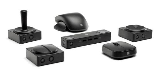 微软为残疾人制造了许多非传统设备,例如,Xbox的自适应控制器是一个受欢迎的产品,通过这个产品,残疾人玩家也可以享受游戏手柄的乐趣。同时,对于非游戏用户来说,微软也引进了类似的设备,例如 adaptive配件系列,它包括一个适应性连接器, 一个适应性鼠标, 和一个适应性按钮.