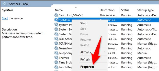 提示:在列表中快速找到"SysMain",单击列表中的任何项目,然后在键盘上开始键入"sysmain"(没有标识符)。