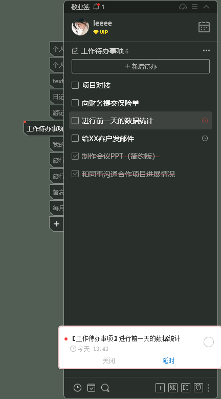至于提醒,它可以为每个等待内容设置一个提醒,默认通过桌面弹出窗口和到达指定日期和时间的铃声发送一个提醒。 当然,如果你想在手机上收到提醒通知,你可以绑定WeChatApp、NailApp或打开语音电话、手机文本提醒。