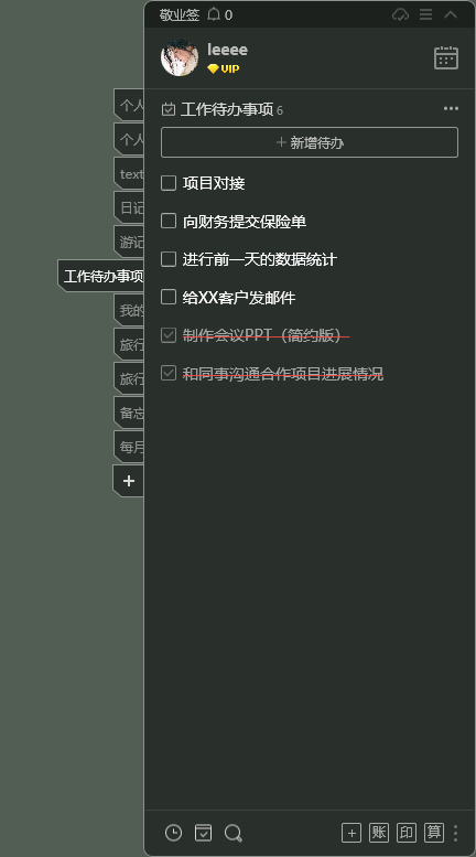 以Windows电脑终端为例,它的界面十分简洁,第一个印象是软件易于使用,事实也确实如此。创建待办分类之后,你可以按“新”按钮添加内容,进入并保存完成的目标后,您将生成一个列表模板,每个行前有一个方形,用来标记钩子。