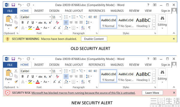 知道,当你最初宣布对VBA宏的默认禁令时,微软首席项目经理凯利·艾克迈尔(Kelly Eickmeyer)说,用户可以通过点击一个按钮执行宏,黑客经常发送给用户一个内部宏的Office文件,在不意地激活宏之后,系统将载有恶意内容.