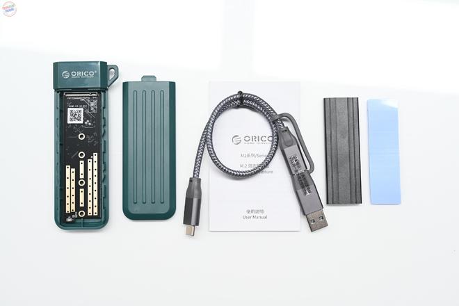 奥里科内部提供完整的配件,这包括一套热带和传热器垫,它可以满足硬盘的热耗需求.除了硬盘盒外,ORICO 还 提供 两 对 一 的 数据 线,与USB-C和A连接器,当使用数据线时,请注意一个小细节,这是接口的三角形,是10号方形标志的接口,这允许通过USB-A端口实现10Gbps的传输速度。