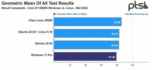 Win11和Ubuntu22.04LTS的专业版本、ClearLinux36580和其他Linux版本在测试中,Win11和Win11都未能取得优势。这意味着,在日常生活中,比如上网,查看视频等操作中,Win11没有用户所期望的优点,我不得不说有些失望.