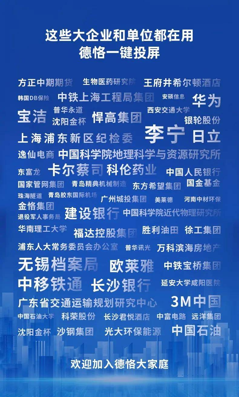今天,我们向贵公司介绍,德克全国的无线屏幕用户,许多企业、部门单位和高中多媒体教室,德克企业希望提供更智能、更方便、更高效的屏幕体验,不断为客户创造更大的价值。