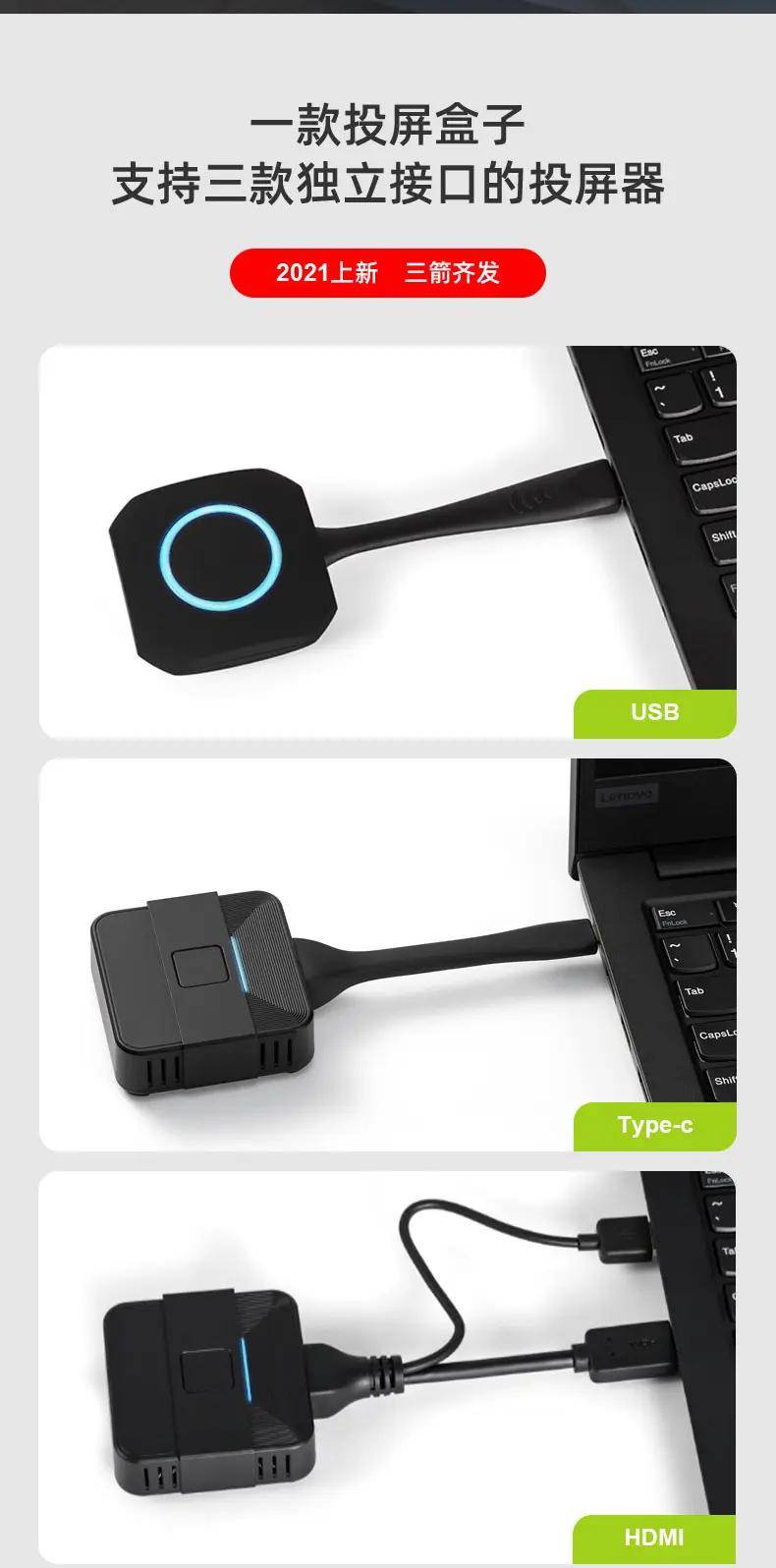 你可以看到上面的练习视频,你只需要在你的笔记本电脑的相应的三个接口(USB/HDMI或Type-c)上插入一个键盘。等待数秒,按按钮等待显示灯开关,不再闪烁,这个时候轻按按键,笔记本电脑的屏幕可以在显示端子上显示.使用非常简单,不需要设置任何设置。也不需要安装软件,不依赖您的会议室的无线网络,即使你是一个小白人电脑,你也可以很容易做到。