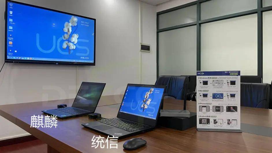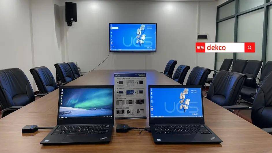 下面我们进入今天的主题,向你展示,让我们从会议室电视的应用场景开始吧,让我们给你看UOS,银河麒麟,Windows,macOS,如何在单一步骤中完成,笔记本电脑的屏幕可以在显示端子上显示.让我们先看看我们自制的独一无二的UOS和Krin系统笔记本的屏幕: