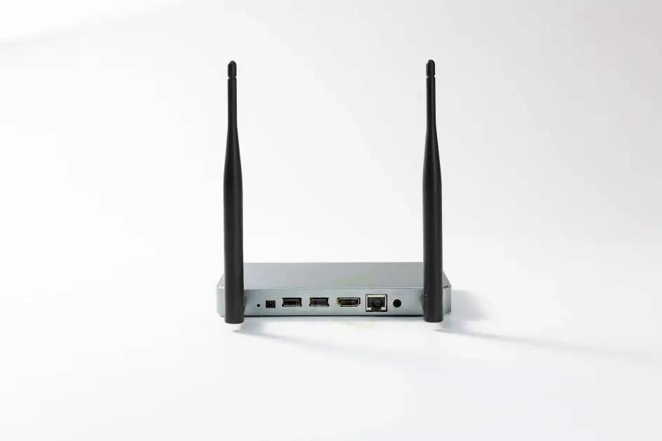 笔记本电脑需要在屏幕上插入一个按钮,会议室的显示终端也需要连接到我们的敏捷屏幕盒,屏幕上的按钮实际上相当于我们发射的终点,屏幕盒相当于我们的接收器,两者搭配使用,对于不同的显示端子,有不同的连接方式,电视直接连接到HDMI线,LED屏幕或液晶面板是一个输出HDMI信号的盒子,用于LED视频处理器或面板分配器/矩阵连接。实物图如下: