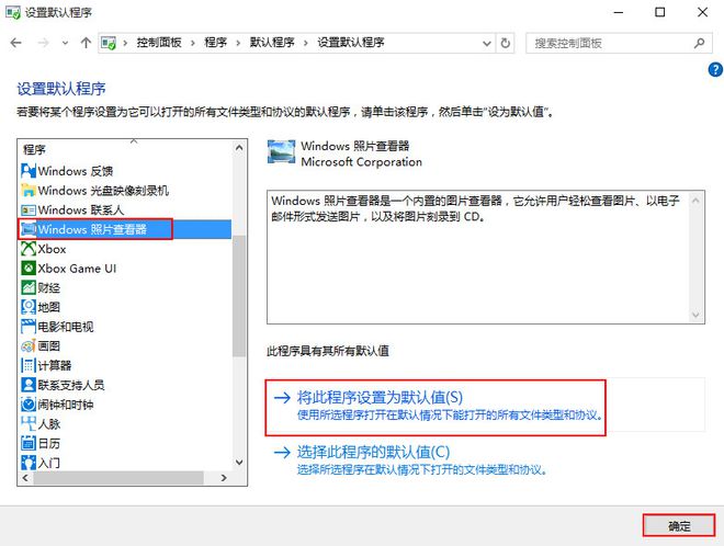 6、点击“将此程序设置为默认值”,点击“确定”按钮,如下图所示: