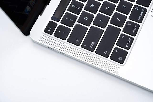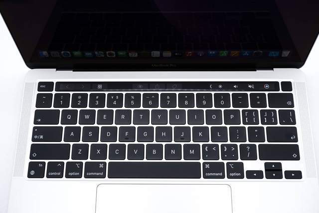 配备剪刀式结构背光妙控键盘,拥有65 个 (ANSI) 或 66 个 (ISO) 按键,包括 4 个方向键 (呈倒 T 形排列),另外右上角为触控ID以及顶部的“可养宠物”触控栏。