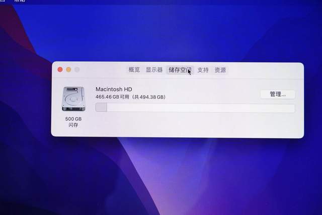 MacBook Pro 2022的总容量为494.38GB,在启动后,系统数据大约占有30GB。