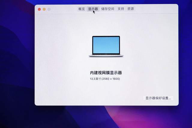 该系统显示了一个内置网膜显示器,其分辨率为 2560×1600像素。