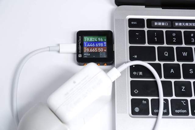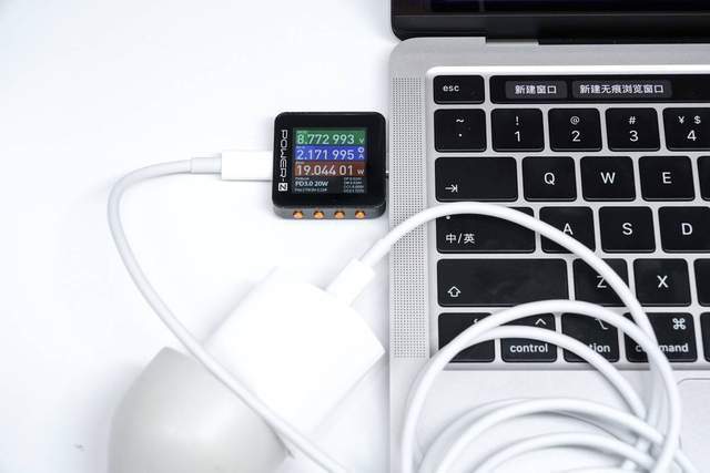 它使用苹果的20W充电器来充电MacBook Pro M2,功率为8.77V 2.17A 19.04W。