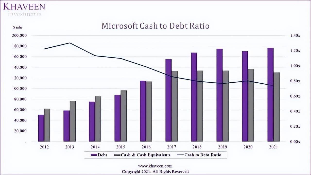 此外,微软的覆盖率高于IBM的覆盖率,这表明它有较强的债务偿还能力。
