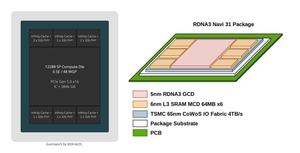 AMD提交给Linux内核的驱动补丁最近意外泄露了RDNA3架构Navi 31的MCD显存控制器数量为6个。