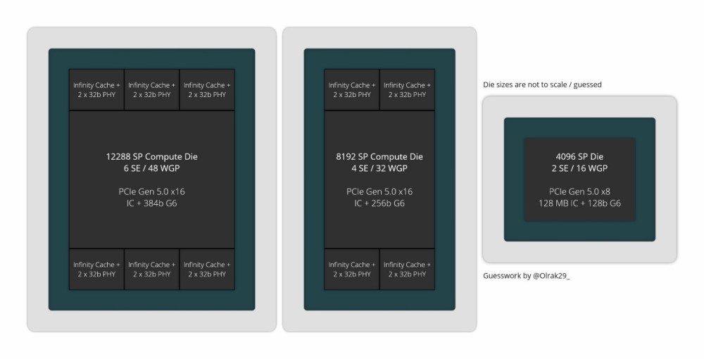 下面的图表显示了Navi 3x GPU的潜在芯片配置,预计将于今年晚些时候发布。