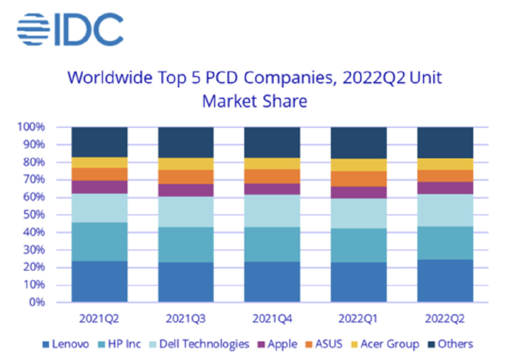 而提到生产力,苹果的Mac系列并不是没有问题。近年来,苹果公司通过自开发的芯片推动了Mac系列,在创建内容方面具有相当大的优势,似乎仅仅提到生产率,只是直接选择Mac 吗?然而,事实上,Windows版本是更多用户的选择,你可以从数据中看到,2022年第二季度全球笔记本出货量排行中,麦凯恩生产了4800万台,只有6.7%的市场份额,其余的都是Windows营地。
