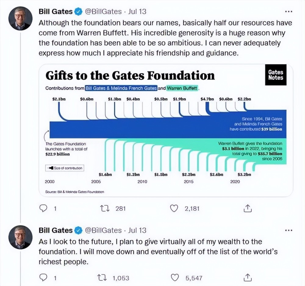 正如你所看到的,比尔·盖茨(Bill Gates)为捐赠他的全部财富做出了重大举动,他说:“同时展望未来,我制定了一个计划,那就是将我几乎所有的财富捐赠给基金会。
