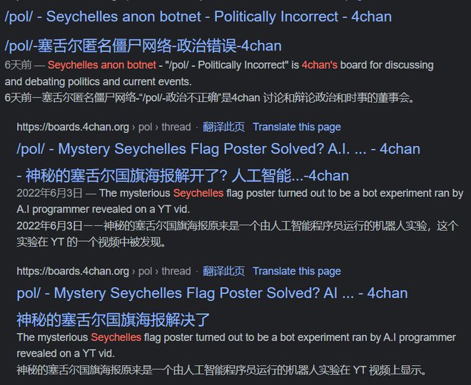 但,塞舍尔是一个热带小国,人口较少,在 4chan 上的整体活跃度一直不高,现在塞舌尔网友突然开始高密度、日夜不停在 4chan 网上冲浪?好像哪里有点不对。。。