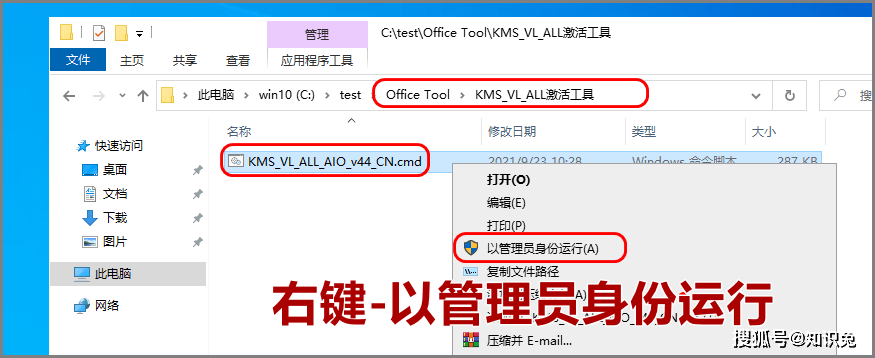 打开安装文件夹中的激活工具文件夹。 如下图所示,右击cmd文件以运行为管理员。