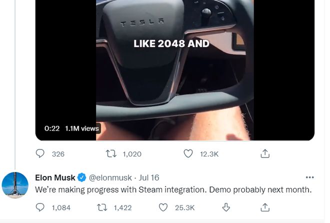 特斯拉 CEO 埃隆·马斯克在与网友的互动中透露,他们的“特斯拉汽车内置 Steam”项目已取得进展,可能会于下个月公布相关演示 。