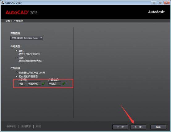 5、输入序列号666-69696969”“066-66666666”“667-98989898”,任选一组,产品密钥输入“001E1”