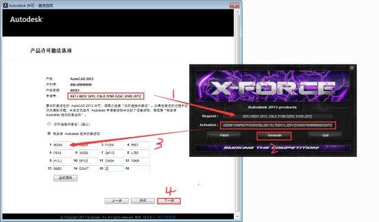 按照图表所示的步骤,先将应用程序号码复制到注册处,然后单击生成生成激活代码,然后将生成激活代码复制到左侧激活代码栏,然后单击下一个步骤