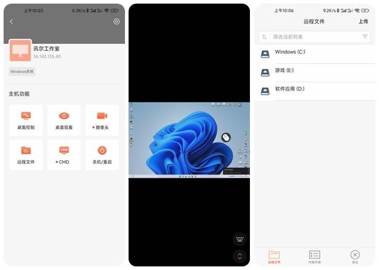 它可以在Sunflower远程控制客户端中看到,我们可以使用手机等设备来远程PC设备做桌面控制、桌面查看、摄像机、远程文件、CD、开关/重新启动等,它非常强大。