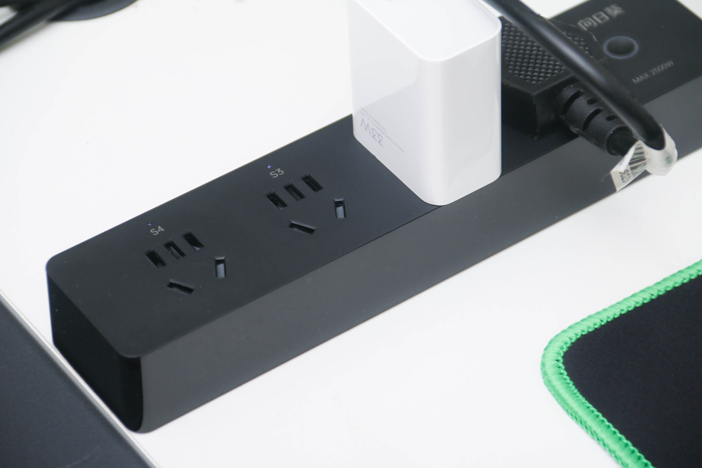 功率方面,太阳花P1Pro有4个最新的五孔插头,所有10A的设计都采用了,整个插座板可携带最大2500W的电源,适合办公室或一般家庭使用。板的交界处有LED指示灯以显示工作状态,插件开关还装有指示灯,单击通电和断电,在5秒内重新设置工厂设置。