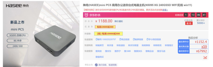 千元MiniPC配8G内存240G固态硬盘,还预装Win11