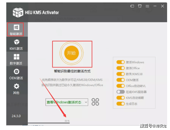 12.点击智能激活,自动确定安装的版本,然后点击大橙色按钮,等待激活完成