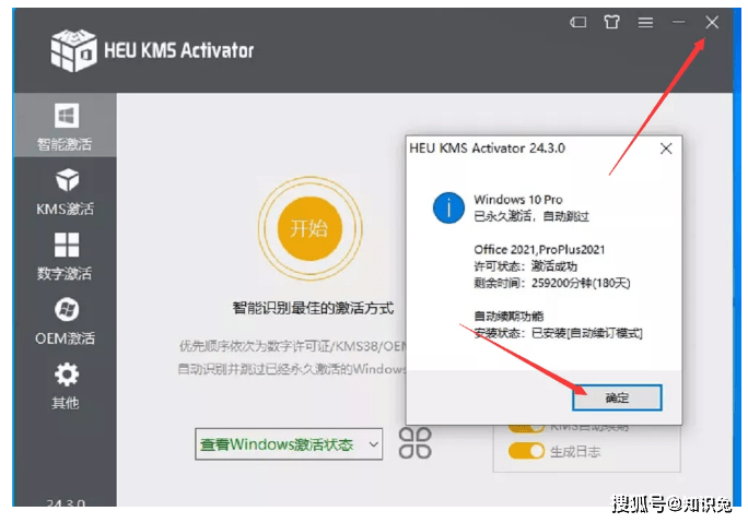成功地激活 office2021 单击“完成”关闭工具。 显示180天,直到他自动恢复。