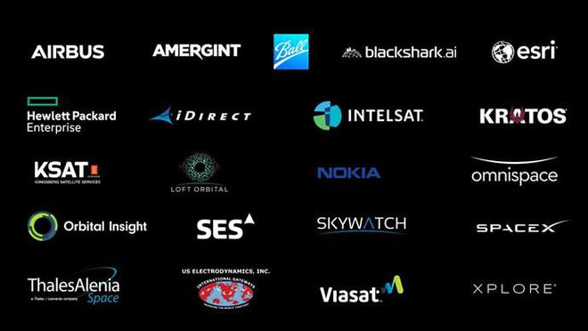 包括 Omnispace、Orbital Insight、SES、SkyWatch、SpaceX、Thales Alenia Space、Xplore、US Electrodynamics、空客(Airbus)、Amergint、Ball Aerospace、blackshark.ai、Esri、Hewlett Packard Enterprise、iDirect、Intelsat 、Kratos、KSAT、Loft Orbital、诺基亚(Nokia)、以及 Viasat 。