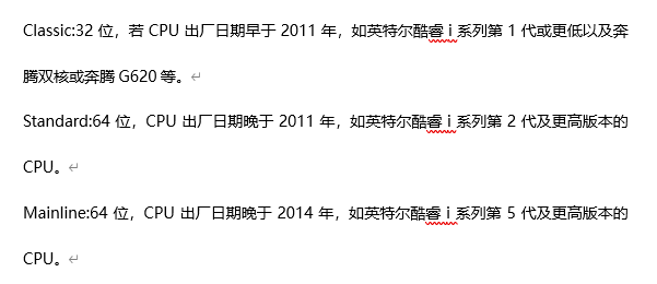 有三个版本:classic、standard、mainline