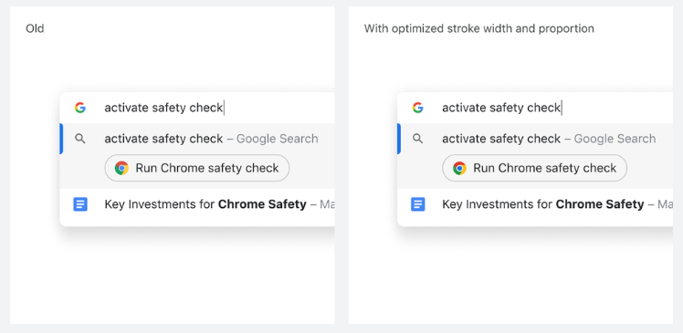 此外,今年的新图标改变了中间蓝色圆的比例,设计师问谷歌眼力差的员工,发现新图标的蓝色和白色部分更容易识别。设计师还为小型用户界面制作了不同的图标版本,通过画素边界来提高可读性和避免模糊性.